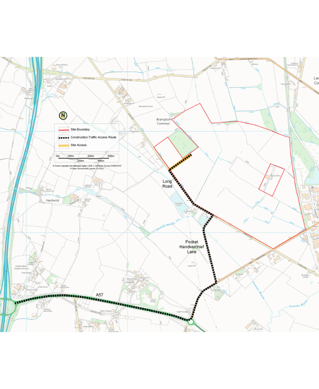 The main traffic route agreed in the traffic management plan is via the M1, exiting onto the A57, then B6463, onto Pocket Handkerchief Lane and then Long Road where a new site access will be created.