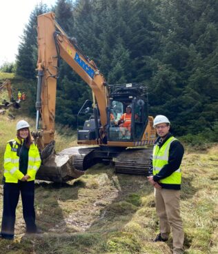 Aileen McCreadie, Alan Wells and Davy Campbell from Duncan Plant Hire at Lethans Wind Farm
